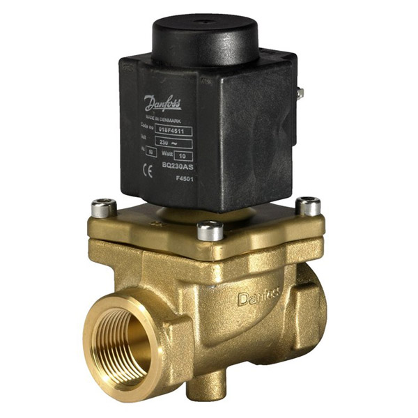 The servo-operated piston design with PTFE seal on the main orifice and steel valve plate in the armature secures a reliable function and long life in steam applications. Versions: EV245B used with BQ coil, ac voltage up to 185ºCEV245B used with BN coil, dc voltage up to 160ºCEV245B used with BB coil, ac voltage up to 160ºC or dc voltage up to 140ºC 2/2-way Specifically designed for steam applications, 160ºC or 185ºC Servo piston operated DN15 – DN25 Ambient temperature: +40ºC G1/2 to G3/4 Brass valve body NC (normally closed)